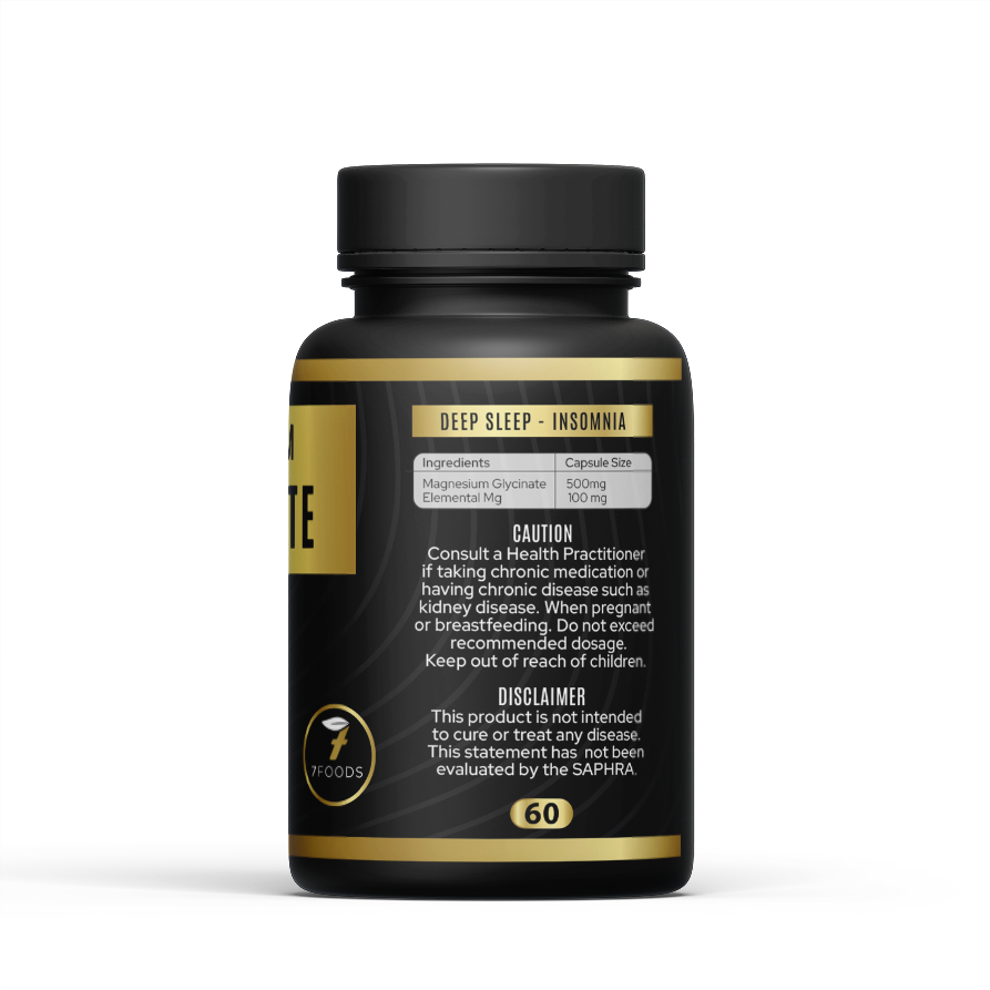 INGREDIENTS PER CAPSULE: Magnesium Glycinate 500mg, Elemental Mg 100mg.